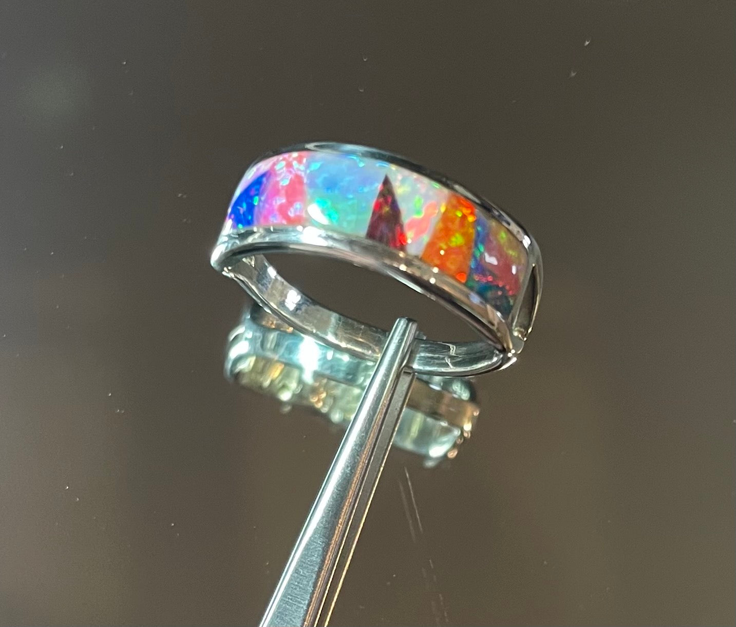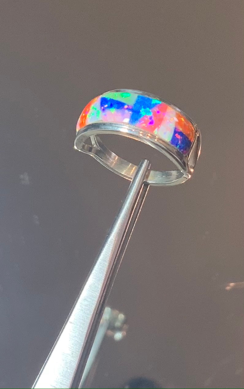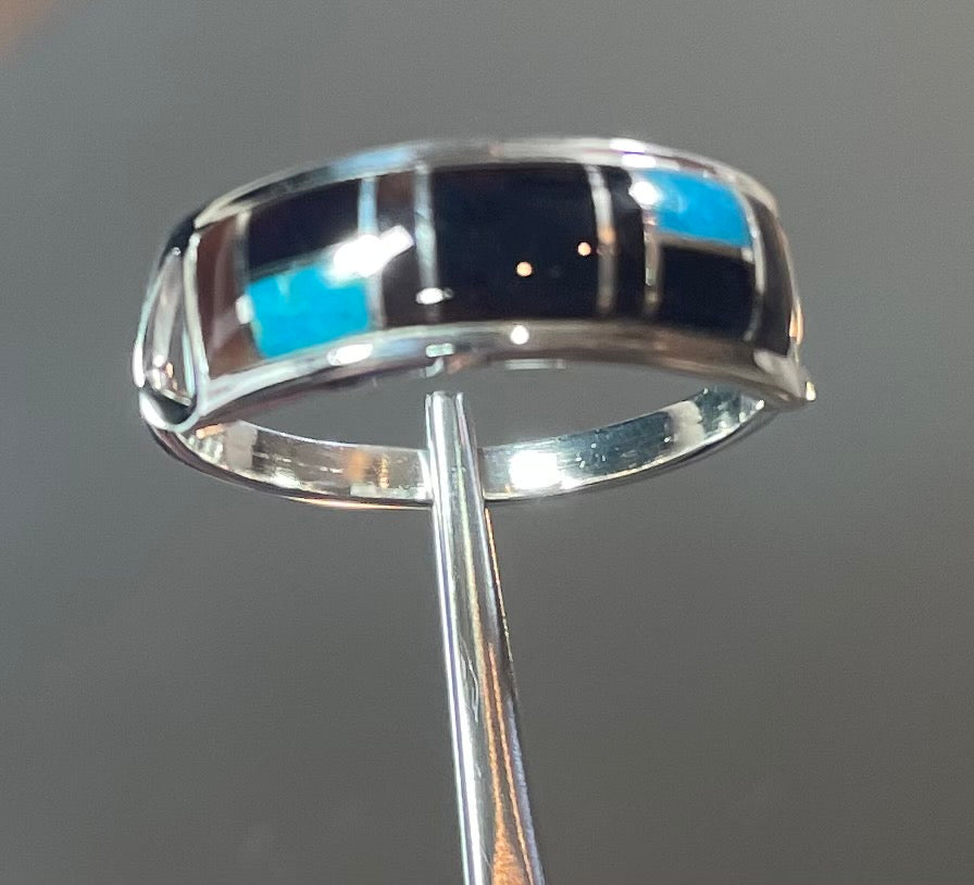 Stones: Lab Created Opal. Sterling Opal created in Phoenix, AZ. Black Onyx.